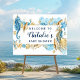 Signe de bienvenue pour une baby shower bleu et or Under the Sea (affiche) avec des hippocampes, des étoiles de mer, des coquillages et des récifs coralliens en calligraphie moderne. Pour une personnalisation avancée de ce design, veuillez cliquer sur le bouton "Personnaliser" ci-dessus ! Des articles assortis sont également disponibles.