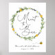 Accueillez vos invités à votre fête de mariage avec ce poster amusant, mettant en vedette des abeilles bourdonnantes et "meant to bee" dans un script élégant entouré d'une couronne de marguerites et de verdure. Ajoutez le nom de l'invitée d'honneur, la date de la fête et le texte de bienvenue personnalisé à l'aide des champs fournis.