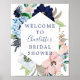 Accueillez vos invités avec notre superbe affiche de bienvenue pour une fête prénuptiale avec un cadre floral bleu marine et rose blush.