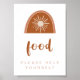 Ce panneau de table d'alimentation imprimable est muni d'un arc-en-ciel en terre cuite orange bohème avec un soleil au centre et d'une police manuscrite mignonne. Modifiez la plupart des textes pour répondre aux besoins de votre événement. 💜 COULEURS SONT ÉDITABLES ! Cliquez sur "modifier la conception" pour modifier les couleurs de votre fête.