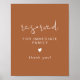 Ce panneau réservé mariage est doté d'une police manuscrite pointue et d'un design minimaliste moderne avec une combinaison de couleur terre cuite et rouille et les mots "réservé à la famille immédiate". Utilisez ce poster pour votre réception de mariage, douche nuptiale, fête de retraite, etc. Modifiez le libellé *le plus* pour répondre à vos besoins. Associez les objets supplémentaires de la collection CORIANDER pour un look cohérent.