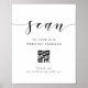 Panneau de table avec QR code pour programme de mariage sur mesure avec un design minimaliste moderne noir et blanc.