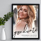Ce panneau simple et minimaliste de remise des diplômes comporte une photo pleine page du diplômé avec "Graduate" en noir écrit manuscrit sur le fond. En dessous, le nom du diplômé, "Classe de 2025", et le nom de l’école sont affichés sur un dégradé blanc subtil qui s’estompe sans heurt dans l’image, assurant ainsi que le texte se démarque. Conçu comme une décoration design et moderne, ce panneau fonctionne bien comme un panneau de bienvenue à l'entrée de la fête ou dans le cadre de la décoration de l'événement. Entièrement personnalisable, vous pouvez modifier le texte, les polices et les couleurs pour correspondre à votre vision. Une façon parfaite de souligner la réussite du diplômé et de célébrer cette étape spéciale! Disponible soit en version imprimée, soit en tant que fichier numérique téléchargeable à imprimer à la maison ou localement.
