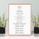 Un simple signe de programme de cérémonie de mariage de feuille d'or rose floral monogramme simple. Facile à personnaliser avec vos détails. Programme de cérémonie boho moderne signe éditable, personnalisable, calligraphie police manuscrite, simple, élégant.