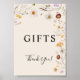 Les signes cadeaux sont caractérisés par un style boho avec des oeuvres florales et des couleurs neutres terreuses et beiges.