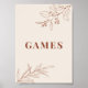 Les signes de jeux sont caractérisés par un style boho avec des oeuvres florales et des couleurs neutres terreuses et beiges.