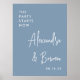 Ce panneau encadré simple et élégant est la façon parfaite d'accueillir vos invités à votre journée de mariage avec une touche d'élégance et de style! Avec les mots "La fête commence maintenant" en lettres blanches modernes, avec vos noms dans une belle typographie manuscrite et votre date de mariage, le tout mis contre un arrière - plan bleu poussiéreux doux, ce signe est sûr de faire une impression durable. Parfait pour l'exposition dans un endroit bien en vue lors de votre cérémonie, de votre cocktail ou de votre réception, il peut facilement être encadré comme un garde-manger après votre journée spéciale. Avec son design chic et moderne, cette affiche encadrable en bleu clair foncé et tendance est la meilleure façon d'ajouter une touche de sophistication à votre décor mariage, et de donner le ton pour une célébration que vos invités n'oublieront pas.