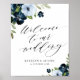 aquarelle peinte bleu poussiéreux et bleu marine fleurs et script noir. Le texte et les couleurs de cette affiche de signe mariage peuvent être modifiés.