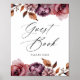 Panneau de la marque Rustique florale mariage avec fleurs de cascade et feuillage dans les tons marsala, bordeaux, violet, brun et orange rouille. L'élégant design floral d'automne est complété par un script de calligraphie moderne. Personnalisez le panneau du livre d'invité mariage avec votre texte personnalisé. Le panneau de réservation d'hôtes à fleurs d'automne est parfait pour vos mariages de automne ou événements spéciaux. Conçu pour coordonner avec notre collection Rustique de mariages floraux d'automne.