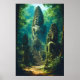 Step into the heart of Thailand’s mystic jungles with this captivating artwork, where ancient Buddha statues stand in serene silence amidst lush green canopies. Bathed in golden light and wrapped in mist, the scene evokes a sense of timeless peace and spiritual wonder.