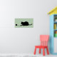Grand poster pour les amoureux de les chats ! Silhouette noire classique d'un chat jouant avec une boule de fil sur arrière - plan vert.