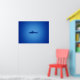 silhouette de requin floue contre un arrière - plan d'eau bleu avec un éclat bleu clair
