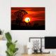 Affiche Silhouette giraffes and rhino