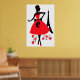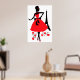Affiche Silhouette noire rouge femme rétro avec Tour Eiffe