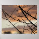 Un seul oiseau perché sur une branche nue contre un ciel spectaculaire au coucher du soleil.