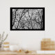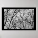 Image en noir et blanc. Il s'agit d'une image basse résolution pour le web, l'impression que vous obtiendrez a des détails pointus. Des silhouettes de cimes d'arbres contre un ciel nuageux. Photographie de Minerva Bloom.