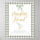 Add playful fun to your celebration with this Silly Goose Is Soon to Be on the Loose Pacifier Hunt table sign. Featuring the soft green gingham plaid and sweet white goose illustration, this baby shower game sign directs guests as they search for hidden pacifiers. Pair it with coordinating bingo cards, diaper raffle inserts, and advice cards from the Silly Goose baby shower collection to create a cohesive green gingham baby shower theme filled with interactive fun.