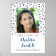 Photo personnalisée poster de fête de 16 ans avec confetti bleu et argent.