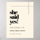 Elle a dit oui : signe de bienvenue de la douche nuptiale. Minimaliste mais frappant : adoptez ce design typographique légèrement rétro pour votre poste de douche nuptiale, avec une couleur crème élégante. Texte, couleurs et arrière - plans entièrement personnalisables.