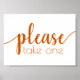 Simple horizontal "Please Take One" shower, party, or reception table signage featuring a fun, casual hand-letter script. Le design classique inclut un typography overlay typography typography, en caractères de main moderne. The lovely font with a customizable background color makes it easy to fit any theme. For other colors or matching products, please visit the JustFharryn Zazzle store, or contact the designer, c/o fharryn@yahoo.com All rights reserve. #zazzlemade