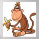 Un singe assis tenant une banane prête à manger. Ce design semble vraiment efficace sur cette affiche