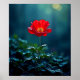 Discover the dramatic beauty of a solitary, luminous bloom. This captivating artwork centers on a single red flower, its fiery petals glowing intensely against a deep, cool blue and shadowed background. The stark contrast creates an emotional, striking visual perfect for adding mood and passion to your theme. This unique piece began with advanced AI artistry and was then meticulously refined by a skilled artist to ensure enhanced detail and creativity. It’s an original statement piece, far beyond a simple photo. Embrace the joy of shopping and bring this stunning blend of darkness and light into your life-style. Place your order today and elevate your style!
