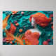 Affiche Sirène en papier dans un récif corallien