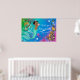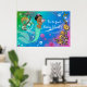 Affiche de baby shower de sirène avec adorable sirène ethnique bébé et joli poisson et hippocampe en or sur un beau rose, vert et bleu sous l'arrière - plan de mer. Cette jolie affiche de sirène peut être customisée avec votre texte dans le style de police et la couleur de votre choix, ou vous pouvez supprimer l'exemple de texte et ajouter un cadre et un tapis pour une belle crèche ou l'impression de chambre d'enfant.