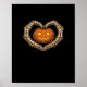 Un squelette mains coeur avec design Halloween éffrayant citrouille. Mignonne, festive et saisonnière.