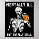 Affiche Skeleton Mentally Ill Totally Chill Funny Retro Ha
