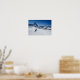 Poster print of a female skier skiing on the slopes of Matterhorn mountain through fresh snow on a beautiful day with a clear blue sky in ski resort Zermatt, canton Valais in Switzerland.