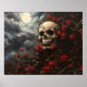 A hauntingly beautiful gothic oil painting featuring a weathered skull entangled in thorny vines and vivid red roses, set beneath a luminous full moon. This dramatic piece blends beauty and darkness, perfect for Halloween decor, gothic art lovers, or alternative interior styles.