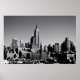 Une magnifique photo en noir et blanc de l'horizon de New York avec l'Empire State Building, le Chrysler Building et les autres bâtiments classiques qui composent l'horizon du centre-ville de Manhattan.