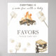 Aquarelle un feu de joie, marshmallows sur bâtons, sandwich biscuit. Feu de camp dans les bois.