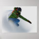 Image numérique stylisée d'un snowboardeur soufflant à travers de la poudre profonde.