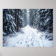 Affiche Snowy Winter Forest Path With Footprints Hiking