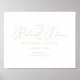 Ce panneau d'accueil de la répétition chic et or est parfait pour une répétition mariage rustique. Le design sobre et élégant présente une typographie de script classique et sophistiquée en or.