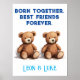 Conception de petits ours : si mignon, si unique pour une crèche jumelle. "Né ensemble. Meilleurs amis pour toujours". Personnalisez avec des noms de jumeaux. Belle affiche au design vintage. Voir mon autre gamme de produits pour petits ours.