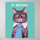 Affiche "SOIS INCROYABLE !" Cravate Chat & Lunettes, Turqu
