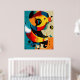 Dynamic curved shapes in teal, red, and amber evoke the warmth of a solar eclipse. This mid-century abstract composition bridges Bauhaus precision and freeform motion, ideal for modern interiors and creative spaces. Printed in vibrant tones for maximum visual depth and contemporary style.