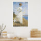 C'est un tableau d'une femme de l'époque victorienne vêtue de blanc. Elle se tient dans l'herbe au-dessus de l'océan. Elle se protège les yeux du soleil avec sa main.