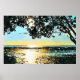 Poster présentant une image originale du lever du soleil de la mer aquarelle qui provient d'une photographie convertie en une image aquarelle.