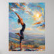 Une femme se tient au milieu d'un moment d'équilibre, atteignant le soleil levant. Cette peinture vibrante reflète l'harmonie entre le corps, la respiration et la nature à travers des touches expressives et des couleurs éclatantes. Le ciel tourbillonnant et la lumière brillante évoquent un sentiment d'éveil spirituel, de paix et de présence. Parfait pour les amateurs de vie pleine d'esprit et d'art impressionniste moderne, cette pièce rayonne d'énergie, de clarté et de connexion — un mantra visuel pour la force et la sérénité.