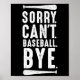 Affiche Sorry Can't Baseball Bye
