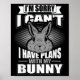 Affiche Sorry I Can't I Have Plans With My Bunny Rabbit