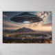 Soucoupe volante OVNI au-dessus d'une ville circulaire