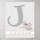 NewParkLane - Affiche personnalisée pour la chambre de bébé ou d'enfant (garçon), représentant une souris bébé mignonne, sur un fond gris doux avec de petits pois blancs.