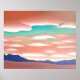 Imprimer dans un style boho / minimaliste illustration d'une scène de désert du sud-ouest sous un ciel d'aube avec nuages rose saumon