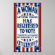 En 1919 et 1920, les femmes ont utilisé le panneau vintage des droits des femmes pour montrer qu'elles s'étaient inscrites pour voter, leur nouveau droit en vertu du 19ème amendement récemment adopté. Habituellement accroché aux fenêtres et aux murs, le panneau encourageait également d'autres femmes à s'inscrire pour voter. La réimpression a été numériquement restaurée par VintageSketch afin de réduire les dommages causés par l'âge et d'améliorer la qualité d'impression optimale. Apporte une grande touche historique à votre maison !