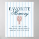 Ce panneau élégant et téléchargeable de souvenir préféré présente une illustration vintage inspirée, dessinée en rouge, d'un homard sur un fond rayé bleu clair.